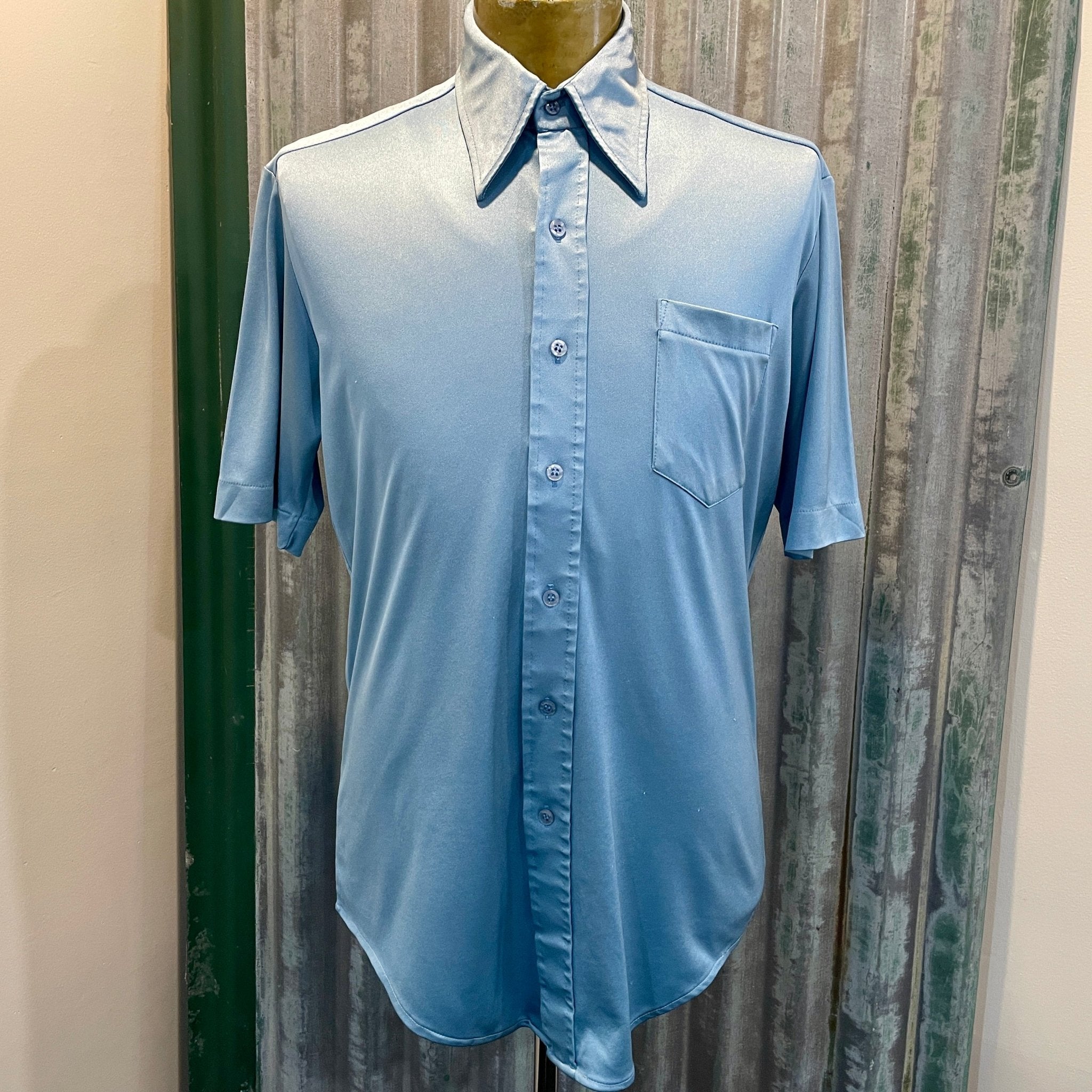 1970's Vintage Men's Sky Blue S/S Shirt Sz M - OOAK